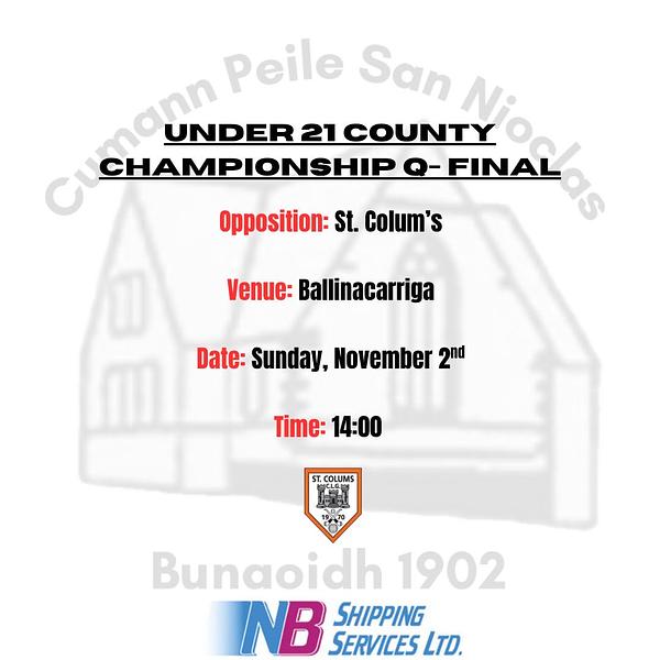Back into championship action on Sunday, support our under 21 team in county championship action