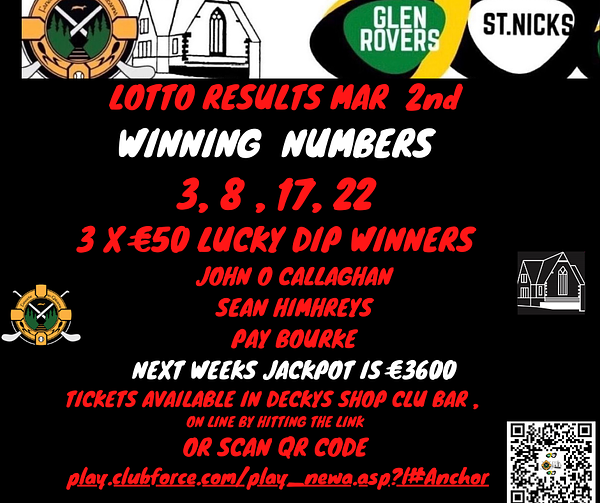 Lotto is now €3,200 Make Sure to Buy A Ticket